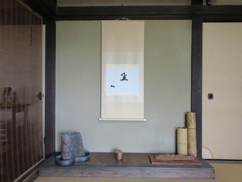 暁烏敏(あけがらすはや)「いきる」。ふるいは願力寺(がんりきじ)の庫裏(くり)2番めのへやのとこのまにかざられとる。願力寺16世山田友山の一周忌におとずれてかいたもんだっていう。一見単純でつたなくみえるけど、じつは1935年にめをわずらい、ほれか…